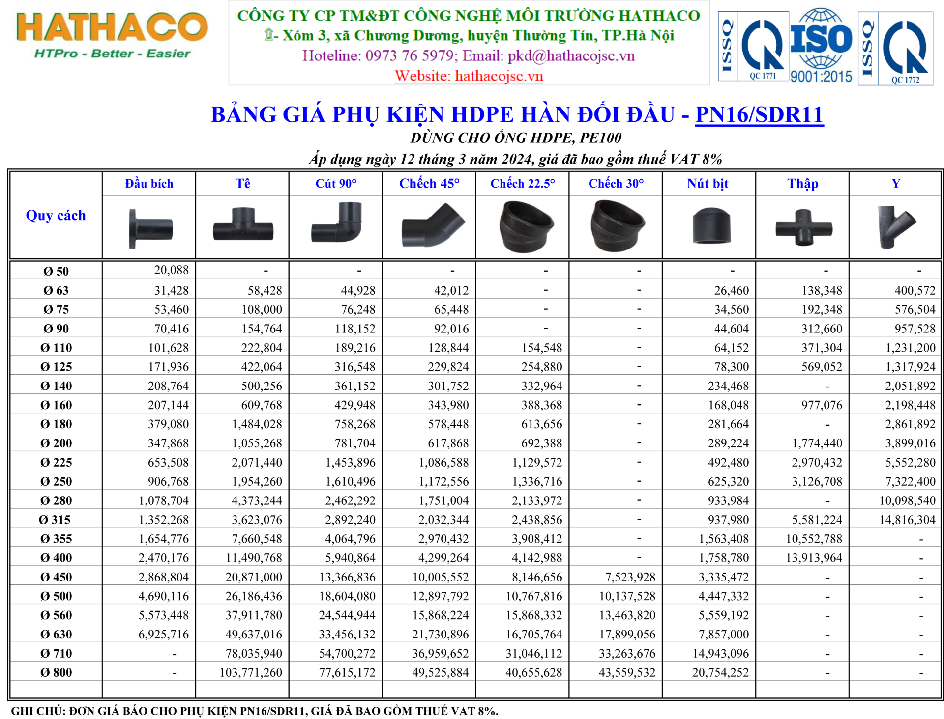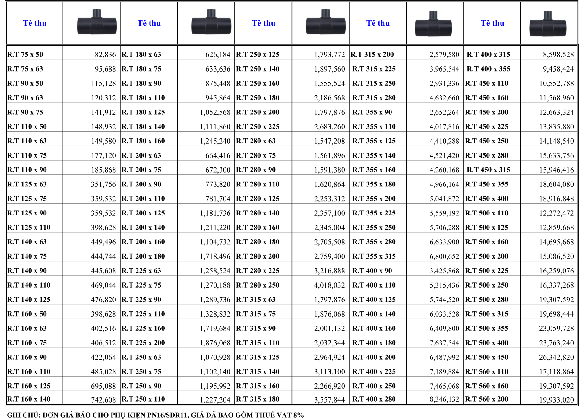 Bảng giá phụ kiện HDPE hàn đối đầu PN16