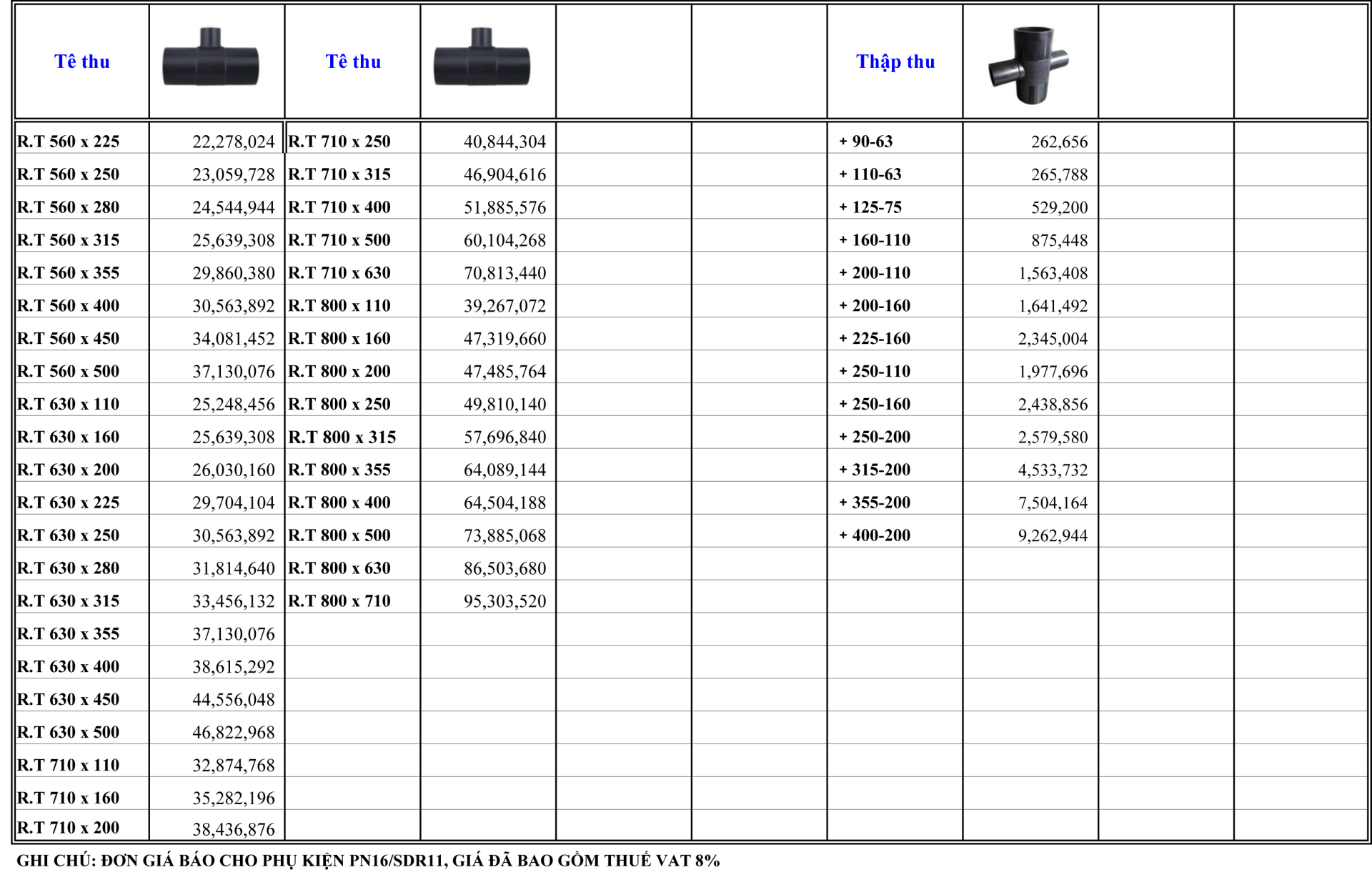 Bảng giá phụ kiện HDPE hàn đối đầu PN16